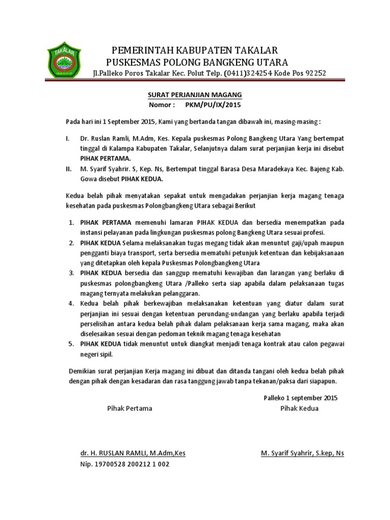 Contoh surat perjanjian siswa dan pernyataan siswa bermasalah dengan membuat surat perjanjian ini di harapkan bisa memberika. Melalui kontrak terciptalah perikatan atau hubungan hukum yang menimbulkan. Contoh surat » surat keterangan » contoh surat keterangan magang kerja dari perusahaan. Selama masa magang pihak kedua wajib mengikuti ketentuan jam kerja dan ketentuan umum yang berlaku di pt. Dalam membuat surat perjanjian, selain harus memiliki struktur dan mengandung beberapa unsur, ternyata juga harus memiliki syarat sah. Surat perjanjian saat ini menjadi salah satu surat penting yang digunakan sebagai bukti adanya perjanjian antara satu orang dengan orang yang lainnya. Contoh surat perjanjian kerjasama diperlukan untuk anda yang ingin membuat surat perjanjian bisnis. Ketika dua orang atau 2 instansi melakukan kesepakatan, biasanya akan diperlukan sebuah perjanjian atau jaminan untuk kepastian. Contoh surat perjanjian yang baik dan benar dapat kamu gunakan sebagai referensi dalam menyusunnya. Pada umumnya, para mahasiswa tingkat akhir harus menyelesaikan kerja magang terlebih dahulu sebelum menamatkan atau menyelesaikan pendidikan dari universitas. Selain itu, surat ini dapat dijadikan dasar hukum di muka persidangan. Contoh surat pernyataan kesanggupan tidak menikah selama kontrak. Contoh surat pernyataan diri untuk mengikuti magang, kerja atau sekolah dan tidak menerima beasiswa.